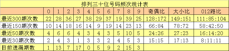 个位号码:前50期走势最活跃的号码为:0开出8个,2开出7个,5、6、7、8、9开出5个;走势最冷的号码为:3开出2个,1、4开出4个。个位号码大小比开出25:25,奇偶比开出21:29。本期个位扼杀两码:5、8,饶恕号码1、4、6,胆码参考6。