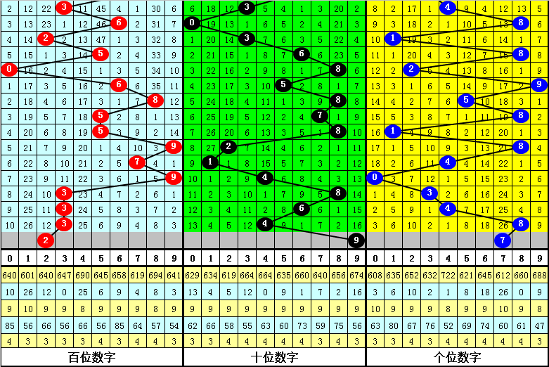 百位分析:该位上期奖号为3,出现0路、奇数、小号,在前11期奖号,该位012路比为7:1:3,0路号码热出,现在012路号码遗漏期数分散为0、4和6,近期百位正式2路号码走热。