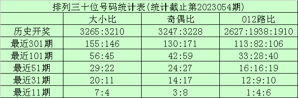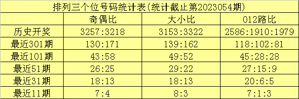 上期归来:摆设三第2023054期奖号为:348。奖号格局组六,大小比1:2,奇偶比1:2,012路1:1:1。