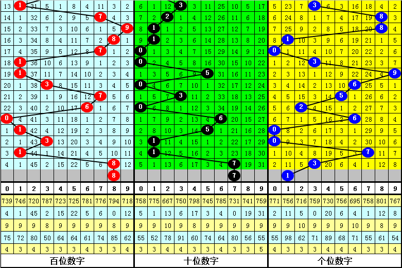 类型判断:上期奖号为873。号码3近10期开出5次,走势活跃,号码7出现3次,走冷,号码8出现1次,走势较冷,上期总体遗漏走温,本期提防温码奖号。