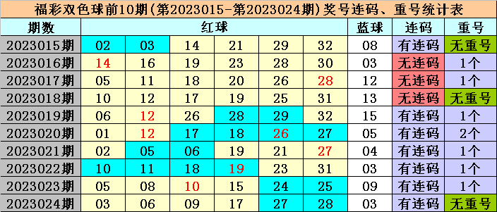上期开奖:福彩双色球第2023024期开出奖号:03 06 09 17 27 28 + 03,其中红球和值为90,首尾间距为25,有连码,莫得开出重叠号码。